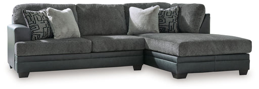 Benchcraft®Appeal to your eye for ultra-contemporary design with this sectional. Chic and sleek in dark neutrals, it pairs cozy fabric with faux leather for i...