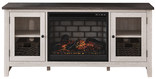 Signature Design by Ashley®With its two-tone finish and minimalist charm, this TV stand with electric fireplace insert is right in tune with your relaxed approach to high sty...