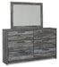 Baystorm - 6 Pc. - Dresser, Mirror, King Panel Bed with 2 Storage Drawers - Gray