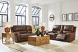 Live and lounge luxuriously. This power reclining seating package brings an ultra-stylish flair to your home’s central hub. Its seating areas are wrapped in top grain leather in a sleek neutral color, giving you a trend-right look made all the better with high-quality materials. And with the simple push of a button, you can adjust the headrests or recline to find your ideal comfort position.