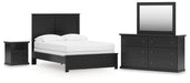 Full Panel Bed with Mirrored Dresser and Nightstand