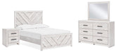 Cayboni Full Panel Bed with Mirrored Dresser and Nightstand