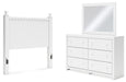 Details B2540-87: Made with engineered wood (MDF/particleboard/plywood) and decorative laminate for the right balance of affordability and durability, Matte white finish, Decorative laminate replicates natural or man-made material surfaces with consistent color, pattern and texture, ¼" bolts (not included) are needed to attach headboard to your existing bed frame, Minor assembly required, B2540B1: Includes dresser and mirror , Made with engineered wood (MDF/particleboard/plywood) and decorative laminate for the right balance of affordability and durability, Matte white finish, Decorative laminate replicates natural or man-made material surfaces with consistent color, pattern and texture, Simple white knobs, 6 smooth-gliding drawers, Drawer interiors are lined with a faux linen laminate for a clean, finished look, Mirror can be attached to back of dresser or wall mounted horizontally or vertically, Safety is a top priority, clothing storage units are designed to meet the most current standard for stability, ASTM F 2057 (ASTM International) , Drawers extend out to accommodate maximum access to drawer interior while maintaining safety, Minor assembly required,