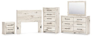 Details | B2310-87: Made with engineered wood (MDF/particleboard/plywood) and decorative laminate for the right balance of affordability and durability, Rustic white finish over replicated reclaimed oak grain with authentic touch, Decorative laminate replicates natural or man-made material surfaces with consistent color, pattern and texture, ¼" bolts (not included) are needed to attach headboard to your existing bed frame, Minor assembly required, B2310B1: Made with engineered wood (MDF/particleboard/plywood) and decorative laminate for the right balance of affordability and durability, Rustic white finish over replicated reclaimed oak grain with authentic touch, Decorative laminate replicates natural or man-made material surfaces with consistent color, pattern and texture, Handles with dark pewter-tone finish, 6 smooth-gliding drawers, Drawer interiors are lined with a faux linen laminate for a clean, finished look, Framed front and pilasters, Safety is a top priority, clothing storage units are designed to meet the most current standard for stability, ASTM F 2057 (ASTM International), Drawers extend out to accommodate maximum access to drawer interior while maintaining safety, Mirror attaches to back of dresser; can also be mounted on wall horizontally or vertically , Minor assembly required, B2310-46: Made with engineered wood (MDF/particleboard/plywood) and decorative laminate for the right balance of affordability and durability, Rustic white finish over replicated reclaimed oak grain with authentic touch, Decorative laminate replicates natural or man-made material surfaces with consistent color, pattern and texture, Handles with dark pewter-tone finish, 5 smooth-gliding drawers, Drawer interiors are lined with a faux linen laminate for a clean, finished look, Framed front and pilasters, Safety is a top priority, clothing storage units are designed to meet the most current standard for stability, ASTM F 2057 (ASTM International), Drawers extend out to accommodate maximum access to drawer interior while maintaining safety, Minor assembly required, B2310-92: Made with engineered wood (MDF/particleboard/plywood) and decorative laminate for the right balance of affordability and durability, Rustic white finish over replicated reclaimed oak grain with authentic touch, Decorative laminate replicates natural or man-made material surfaces with consistent color, pattern and texture, Handles with dark pewter-tone finish, 2 smooth-gliding drawers, Drawer interiors are lined with a faux linen laminate for a clean, finished look, Framed front and pilasters, 2 slim-profile USB charging ports, Power cord included; UL Listed, Minor assembly required, | |