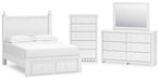 Mollviney Full Panel Storage Bed with Mirrored Dresser and Chest