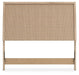 Clean-lined and contemporary—but far from stark—this bedroom package is a fresh style awakening. Pairing a light finish with replicated oak grain and textured beige details that replicate the look of cane, its mixed materials bring a naturally versatile vibe to your bedroom. Sleek, simple hardware plays perfectly with the modern aesthetic.