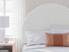 Details | B1323-87: Made with durable engineered wood frame covered in a creamy white boucle, Polyester upholstery, ¼" bolts (not included) are needed to attach headboard to your existing bed frame, Minor assembly required, B1323-245: Made with engineered wood (MDF/particleboard/plywood) and decorative laminate for the right balance of affordability and durability, Subtle blush finish over replicated pecan wood grain, Decorative laminate replicates natural or man-made material surfaces with consistent color, pattern and texture, Champagne colored knobs, 5 smooth-gliding drawers, Drawer interiors are lined with a faux linen laminate for a clean, finished look, Safety is a top priority, clothing storage units are designed to meet the most current standard for stability, ASTM F 2057 (ASTM International), Drawers extend out to accommodate maximum access to drawer interior while maintaining safety, Minor assembly required, B1323B1: Includes dresser and mirror, Made with engineered wood (MDF/particleboard/plywood) and decorative laminate for the right balance of affordability and durability, Subtle blush finish over replicated pecan wood grain, Decorative laminate replicates natural or man-made material surfaces with consistent color, pattern and texture, Champagne colored knobs, 6 smooth-gliding drawers , Drawer interiors are lined with a faux linen laminate for a clean, finished look, Mirror can be attached to back of dresser or wall mounted horizontally or vertically, Safety is a top priority, clothing storage units are designed to meet the most current standard for stability, ASTM F 2057 (ASTM International) , Drawers extend out to accommodate maximum access to drawer interior while maintaining safety, Minor assembly required, | |