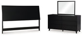 Details | B1013-58: Made with engineered wood (MDF/particleboard/plywood) and decorative laminate for the right balance of affordability and durability, Matte black finish with subtle replicated wood grain, Decorative laminate replicates natural or man-made material surfaces with consistent color, pattern and texture, ¼" bolts (not included) are needed to attach headboard to your existing bed frame, Minor assembly required, B1013B11: Includes dresser and mirror, Made with engineered wood (MDF/particleboard/plywood) and decorative laminate for the right balance of affordability and durability, Matte black finish with subtle replicated wood grain, Decorative laminate replicates natural or man-made material surfaces with consistent color, pattern and texture, 6 smooth-gliding drawers, Drawer interiors are lined with a faux linen laminate for a clean, finished look, Integrated drawer pulls, Framed front and pilasters, Mirror attaches to back of dresser; can also be mounted on wall horizontally or vertically, Safety is a top priority, clothing storage units are designed to meet the most current standard for stability, ASTM F 2057 (ASTM International), Drawers extend out to accommodate maximum access to drawer interior while maintaining safety, Minor assembly required, | |