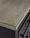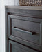 Details B989B4: Includes king panel headboard, storage footboard, and rails with roll slats, Made with hardwood solids, select oak veneers and engineered wood, Two-tone finish (brushed black and dusty grayish brown wood tone), Headboard with picture frame moulding, Footboard with two deep drawers, Smooth-gliding soft-close drawers with fully finished interiors and dovetail construction, Sleek drawer pulls with black finish, Bed does not require additional foundation/box spring; accommodates most zero clearance adjustable bases with the addition of a bunkie board, Mattress available, sold separately, Assembly required, B989B1: Includes dresser and mirror, Made with hardwood solids, select oak veneers and engineered wood, Two-tone finish (brushed black and dusty grayish brown wood tone), Sleek drawer pulls with black finish, 11 soft-close, smooth-gliding drawers with fully finished interiors and dovetail construction (top drawers felt lined), 5 drawers with brushed black finish; 6 drawers with grayish brown wood tone, 3 drawers located behind each door, Mirror mounts to back of dresser, Assembly required, B989-48: Made with hardwood solids, select oak veneers and engineered wood, Two-tone finish (brushed black and dusty grayish brown wood tone), Sleek drawer pulls with black finish, 5 soft-close, smooth-gliding drawers with fully finished interiors and dovetail construction (top drawers felt lined), 3 pull-out trays (felt lined) and 2 adjustable shelves behind door,