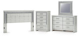 Details | B2114-58: Made with engineered wood (MDF/particleboard/plywood) and decorative laminate for the right balance of affordability and durability, Silvertone pearl finished faux gator, Decorative laminate replicates natural or man-made material surfaces with consistent color, pattern and texture, Faceted chrome-tone details, Faux crystal tufted silver upholstery with faux alligator effect, Glitter inlays, LED lighting with remote for color and brightness options; included holder discreetly keeps remote accessible, ¼" bolts (not included) are needed to attach headboard to your existing bed frame, Minor assembly required, B2114B1: Includes dresser and mirror, Made with engineered wood (MDF/particleboard/plywood) and decorative laminate for the right balance of affordability and durability, Silvertone pearl finished faux gator, Decorative laminate replicates natural or man-made material surfaces with consistent color, pattern and texture, Handles with faux crystal accents, 6 smooth-gliding drawers , Drawer interiors are lined with a faux linen laminate for a clean, finished look, Faceted chrome-tone details, Mirror includes LED lighting with remote for color and brightness options, Mirror attaches to back of dresser; can also be mounted on wall horizontally or vertically , Safety is a top priority, clothing storage units are designed to meet the most current standard for stability, ASTM F 2057 (ASTM International), Drawers extend out to accommodate maximum access to drawer interior while maintaining safety, Minor assembly required, B2114-46: Made with engineered wood (MDF/particleboard/plywood) and decorative laminate for the right balance of affordability and durability, Silvertone pearl finished faux gator, Decorative laminate replicates natural or man-made material surfaces with consistent color, pattern and texture, Handles with faux crystal accents, 5 smooth-gliding drawers, Drawer interiors are lined with a faux linen laminate for a clean, finished look, Faceted chrome-tone details, Safety is a top priority, clothing storage units are designed to meet the most current standard for stability, ASTM F 2057 (ASTM International), Drawers extend out to accommodate maximum access to drawer interior while maintaining safety, Minor assembly required, | |
