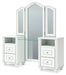 | Details | Includes 2 vanity cabinets and vanity mirror, Made with engineered wood (MDF/particleboard/plywood) and decorative laminate for the right balance of affordability and durability , Matte white finish, Decorative laminate replicates natural or man-made material surfaces with consistent color, pattern and texture , Crystal drawer knobs, 4 smooth-gliding drawers (2 in each cabinet); drawer interiors are lined with a faux linen laminate for a clean, finished look, Open shelf in each cabinet, Glass insert , Mirror features ambient white LED lighting with brightness options, Safety is a top priority, clothing storage units are designed to meet the most current standards for stability, ATM F 2057 (ASTM International), Drawers extend out to accommodate maximum access to drawer interior while maintaining safety, Power cord included; UL Listed, Minor assembly required | |