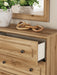 Details | PCB1075B7: Includes panel headboard and footboard with rails, Made with engineered wood (MDF/particleboard/plywood) and decorative laminate for the right balance of affordability and durability , Warm replicated oak grain finish , Decorative laminate replicates natural or man-made material surfaces with consistent color, pattern and texture, Foundation/box spring required, sold separately , Mattress available, sold separately, Minor assembly required, PCB1075B1: Includes dresser and mirror, Made with engineered wood (MDF/particleboard/plywood) and decorative laminate for the right balance of affordability and durability, Warm replicated oak grain finish, Decorative laminate replicates natural or man-made material surfaces with consistent color, pattern and texture, Dark nickel-tone knobs, 6 smooth-gliding drawers, Drawer interiors are lined with a faux linen laminate for a clean, finished look, Mirror attaches to back of dresser; can also be mounted on wall horizontally or vertically, Safety is a top priority, clothing storage units are designed to meet the most current standards for stability, ATM F 2057 (ASTM International) , Drawers extend out to accommodate maximum access to drawer interior while maintaining safety, Minor assembly required, PCB1075-91: Made with engineered wood (MDF/particleboard/plywood) and decorative laminate for the right balance of affordability and durability, Warm replicated oak grain finish, Decorative laminate replicates natural or man-made material surfaces with consistent color, pattern and texture, Dark nickel-tone knob, 1 smooth-gliding drawer, Drawer interior is lined with a faux linen laminate for a clean, finished look, Open shelf, USB-A and USB-C charging ports, Power cord included; UL listed, Minor assembly required, | |