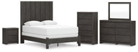 Details | PCB3370B2: Includes headboard panel, headboard posts, footboard and rails, Made with engineered wood (MDF/particleboard/plywood) and decorative laminate for the right balance of affordability and durability , Dark charcoal finish over replicated oak grain, Decorative laminate replicates natural or man-made material surfaces with consistent color, pattern and texture, Foundation/box spring required, sold separately, Mattress available, sold separately, Assembly required, PCB3370B1: Includes dresser and mirror, Made with engineered wood (MDF/particleboard/plywood) and decorative laminate for the right balance of affordability and durability , Dark charcoal finish over replicated oak grain, Decorative laminate replicates natural or man-made material surfaces with consistent color, pattern and texture, Recessed hand grabs create hardware-less effect, 6 smooth-gliding drawers, Drawer interiors are lined with a faux linen laminate for a clean, finished look , Safety is a top priority, clothing storage units are designed to meet the most current standard for stability, ASTM F 2057 (ASTM International), Drawers extend out to accommodate maximum access to drawer interior while maintaining safety, Mirror attaches to back of dresser; can also be mounted on wall horizontally or vertically, Assembly required, PCB3370-46: Made with engineered wood (MDF/particleboard/plywood) and decorative laminate for the right balance of affordability and durability, Dark charcoal finish over replicated oak grain, Decorative laminate replicates natural or man-made material surfaces with consistent color, pattern and texture, Recessed hand grabs create hardware-less effect, 5 smooth-gliding drawers, Drawer interiors are lined with a faux linen laminate for a clean, finished look, Safety is a top priority, clothing storage units are designed to meet the most current standard for stability, ASTM F 2057 (ASTM International), Drawers extend out to accommodate maximum access to drawer interior while maintaining safety, Assembly required, PCB3370-92: Made with engineered wood (MDF/particleboard/plywood) and decorative laminate for the right balance of affordability and durability, Dark charcoal finish over replicated oak grain, Decorative laminate replicates natural or man-made material surfaces with consistent color, pattern and texture, Recessed hand grabs create hardware-less effect, 2 smooth-gliding drawers, Drawer interiors are lined with a faux linen laminate for a clean, finished look, 2 slim-profile USB-C charging ports, Power cord included; UL Listed, Assembly required, | |