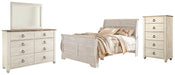 Willowton Queen Sleigh Bed with Mirrored Dresser and Chest