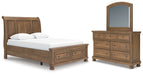 Feddinger Queen Storage Sleigh Bed with Mirrored Dresser