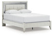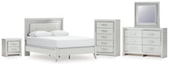 Zyniden Queen Upholstered Panel Bed with Mirrored Dresser, Chest and Nightstand