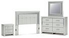 Zyniden Queen Upholstered Panel Headboard with Mirrored Dresser and Nightstand