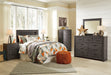 Details | B249-67: Hardware not included, Made with engineered wood (MDF/particleboard/plywood) and decorative laminate for the right balance of affordability and durability, Dark charcoal finish over replicated oak grain, ¼" bolts are needed to attach headboard to existing bed frame, Bolt length depends on thickness of your bed frame, Assembly required, B249B1: Includes dresser and mirror, Made with engineered wood and decorative laminate, Dark charcoal finish over replicated oak grain, 7 smooth-gliding drawers; 3 drawer sizes, Linear pulls with dark pewter-tone finish, Mirror attaches to back of dresser, Safety is a top priority, clothing storage units are designed to meet the most current standard for stability, ASTM F 2057 (ASTM International), Drawers extend out to accommodate maximum access to drawer interior while maintaining safety , Assembly required, | |