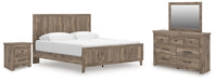 Rusticott King Panel Bed with Mirrored Dresser and Nightstand