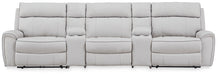 Details Includes 5 modular pieces: left-arm facing power recliner, armless chair, 2 consoles with storage and right-arm facing power recliner , "Left-arm" and "right-arm" describe the position of the arm when you face the piece, Versatile modular pieces fit together in a variety of configurations, One-touch power control with adjustable positions, Easy View™ adjustable headrest and zero-draw USB port, Zero-draw technology only consumes power when the USB receptacle is in use, Zero-gravity mechanism allows optimum reclining comfort with infinite reclining positions at the touch of a button, Corner-blocked frame with metal reinforced seat, Attached cushions, High-quality foam cushions wrapped in poly fiber, Polyester upholstery, Console with 2 cup holders and hidden storage , Power cord included; UL Listed