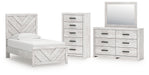 Cayboni Twin Panel Bed with Mirrored Dresser and Chest