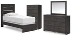 Hollivern Twin Panel Bed with Mirrored Dresser and Chest