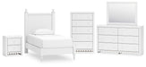 Mollviney Twin Panel Bed with Mirrored Dresser, Chest and Nightstand