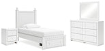 Mollviney Twin Panel Storage Bed with Mirrored Dresser and Nightstand