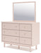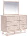 Details | B1323-53: Made with durable engineered wood frame covered in a creamy white boucle, Polyester upholstery, ¼" bolts (not included) are needed to attach headboard to your existing bed frame, Minor assembly required, B1323B1: Includes dresser and mirror, Made with engineered wood (MDF/particleboard/plywood) and decorative laminate for the right balance of affordability and durability, Subtle blush finish over replicated pecan wood grain, Decorative laminate replicates natural or man-made material surfaces with consistent color, pattern and texture, Champagne colored knobs, 6 smooth-gliding drawers , Drawer interiors are lined with a faux linen laminate for a clean, finished look, Mirror can be attached to back of dresser or wall mounted horizontally or vertically, Safety is a top priority, clothing storage units are designed to meet the most current standard for stability, ASTM F 2057 (ASTM International) , Drawers extend out to accommodate maximum access to drawer interior while maintaining safety, Minor assembly required, | |