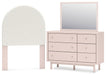 Wistenpine Twin Upholstered Panel Headboard with Mirrored Dresser