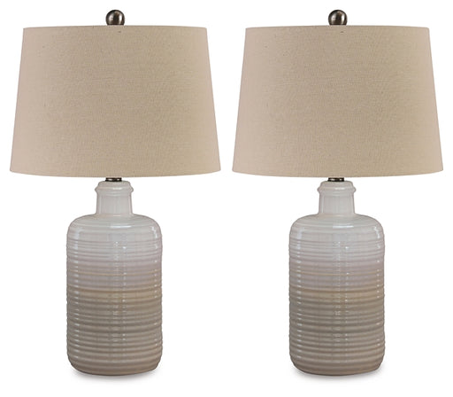 Signature Design by Ashley®Wowing with shades of taupe and white, this table lamp lights up our world. The glazed, textural base encompasses casual-cool beauty beside any sof...