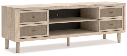 Signature Design by Ashley®Clean-lined and contemporary—but far from stark—this TV stand is a fresh style awakening. Pairing a light finish with replicated oak grain and text...