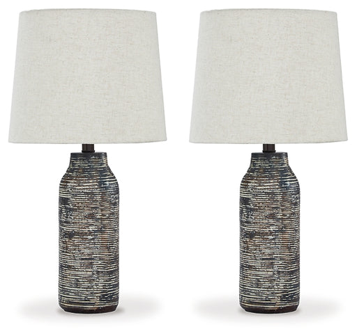 Signature Design by Ashley®Effortless with a fashionable edge. This table lamp lights your home with urban industrial vibes. A black and white finished paper composite surrou...