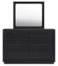 | Details | B768B5: Includes headboard, footboard and rails, Made with pine solids, veneers and engineered wood substrate, Textured black wood stain with waxy topcoat, Extra wide rails for a bench-like wrap around, Foundation/box spring required, sold separately, Mattress available, sold separately, Assembly required, B768B1: Includes dresser and mirror, Made with pine solids, veneers and engineered wood substrate, Textured black wood stain with waxy topcoat, Hardware-less design, 6 drawers with fully finished interiors, dovetail construction and ball-bearing side glides (top drawers felt lined), Mirror attaches to back of dresser, | |
