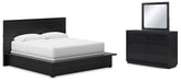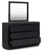 | Details | B768B4: Includes headboard, footboard and rails, Made with pine solids, veneers and engineered wood substrate, Textured black wood stain with waxy topcoat, Extra wide rails for a bench-like wrap around, Foundation/box spring required, sold separately, Mattress available, sold separately, Assembly required, B768B1: Includes dresser and mirror, Made with pine solids, veneers and engineered wood substrate, Textured black wood stain with waxy topcoat, Hardware-less design, 6 drawers with fully finished interiors, dovetail construction and ball-bearing side glides (top drawers felt lined), Mirror attaches to back of dresser, | |
