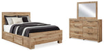 Hyanna Queen Panel Bed with Storage with Mirrored Dresser