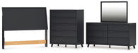 | Details | B1013-57: Made with engineered wood (MDF/particleboard/plywood) and decorative laminate for the right balance of affordability and durability, Matte black finish with subtle replicated wood grain, Decorative laminate replicates natural or man-made material surfaces with consistent color, pattern and texture, ¼" bolts (not included) are needed to attach headboard to your existing bed frame, Minor assembly required, B1013B11: Includes dresser and mirror, Made with engineered wood (MDF/particleboard/plywood) and decorative laminate for the right balance of affordability and durability, Matte black finish with subtle replicated wood grain, Decorative laminate replicates natural or man-made material surfaces with consistent color, pattern and texture, 6 smooth-gliding drawers, Drawer interiors are lined with a faux linen laminate for a clean, finished look, Integrated drawer pulls, Framed front and pilasters, Mirror attaches to back of dresser; can also be mounted on wall horizontally or vertically, Safety is a top priority, clothing storage units are designed to meet the most current standard for stability, ASTM F 2057 (ASTM International), Drawers extend out to accommodate maximum access to drawer interior while maintaining safety, Minor assembly required, B1013-345: Made with engineered wood (MDF/particleboard/plywood) and decorative laminate for the right balance of affordability and durability, Matte black finish with subtle replicated wood grain, Decorative laminate replicates natural or man-made material surfaces with consistent color, pattern and texture, 5 smooth-gliding drawers, Drawer interiors are lined with a faux linen laminate for a clean, finished look, Integrated drawer pulls, Framed front and pilasters, Safety is a top priority, clothing storage units are designed to meet the most current standard for stability, ASTM F 2057 (ASTM International), Drawers extend out to accommodate maximum access to drawer interior while maintaining safety, Minor assembly required, | |