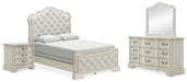 Arlendyne Queen Upholstered Bed with Mirrored Dresser and Nightstand