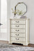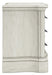 | Details | B980B2: Includes headboard, footboard and rails, Made with hardwood solids, spruce veneer, MDF substrates and cast resin components , Antiqued white painted finish, Polyester upholstery, Button tufting, Foundation/box spring required, sold separately, Mattress available, sold separately, Assembly required, B980B1: Includes dresser and mirror, Made with hardwood solids, spruce veneer, MDF substrates and cast resin components, Antiqued white painted finish, 9 drawers with fully finished interiors, French and English dovetail construction and ball-bearing side glides, Metal bar pulls with aged pewter-tone finish, Mirror attaches to back of dresser, B980-46: Made with hardwood solids, spruce veneer, MDF substrates and cast resin components, Antiqued white painted finish, 5 drawers with fully finished interiors, French and English dovetail construction and ball-bearing side glides, Metal bar pulls with aged pewter-tone finish, B980-93: Made with hardwood solids, spruce veneer, MDF substrates and cast resin components, Antiqued white painted finish, 3 drawers with fully finished interiors, French and English dovetail construction and ball-bearing side glides, Metal bar pulls with aged pewter-tone finish, 110V power supply with dual USB charging ports, Power cord included; UL Listed, | |