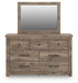 | Details | PCB2260B6: Includes panel headboard, footboard and rails, Made with engineered wood (MDF/particleboard/plywood) and decorative laminate for the right balance of affordability and durability , Deep brown finish over replicated hickory grain with authentic touch, Decorative laminate replicates natural or man-made material surfaces with consistent color, pattern and texture, Foundation/box spring required, sold separately, Mattress available, sold separately , Assembly required, PCB2260B1: Includes dresser and mirror, Made with engineered wood (MDF/particleboard/plywood) and decorative laminate for the right balance of affordability and durability , Deep brown finish over replicated hickory grain with authentic touch, Decorative laminate replicates natural or man-made material surfaces with consistent color, pattern and texture, Hardware with dark bronze-tone finish, 7 smooth-gliding drawers , Drawer interiors are lined with a faux linen laminate for a clean, finished look , Mirror attaches to back of dresser; can also be mounted on wall horizontally or vertically, Safety is a top priority, clothing storage units are designed to meet the most current standard for stability, ASTM F 2057 (ASTM International), Drawers extend out to accommodate maximum access to drawer interior while maintaining safety, Assembly required, | |