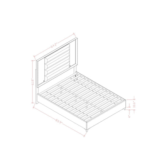 Global Furniture USAPadded Headboard: Offers added comfort and a luxurious feel. Acrylic Legs: Provides durability and a modern aesthetic. Silver Trim: Adds a touch o...