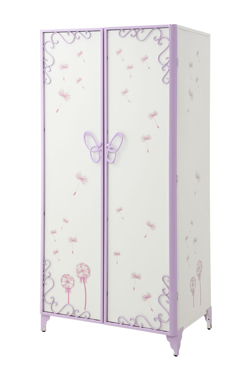 AcmeElegant Butterfly Design: This wardrobe features intricately designed metal doors with butterfly and scrolled trim, accented by PU leather purp...