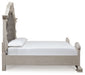 Bruchandi King Upholstered Panel Bed with Mirrored Dresser and Nightstand