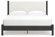 Cadmori King Upholstered Panel Bed with Mirrored Dresser