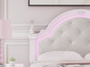 Details PCB1819B6: Includes upholstered panel headboard, panel footboard and rails, Made with engineered wood (MDF/particleboard/plywood) and decorative laminate for the right balance of affordability and durability , Matte white finish, Decorative laminate replicates natural or man-made material surfaces with consistent color, pattern and texture , Polyester upholstery, Acrylic ball tops, Pink, purple and white LED lighting options; touch button control, Power cord included; UL Listed, Foundation/box spring required, sold separately , Mattress available, sold separately, Minor assembly required, PCB1819B2: Includes dresser and mirror, Made with engineered wood (MDF/particleboard/plywood) and decorative laminate for the right balance of affordability and durability , Matte white finish, Decorative laminate replicates natural or man-made material surfaces with consistent color, pattern and texture , Crystal drawer knobs, 6 smooth-gliding drawers, Drawer interiors are lined with a faux linen laminate for a clean, finished look, Safety is a top priority, clothing storage units are designed to meet the most current standards for stability, ATM F 2057 (ASTM International), Drawers extend out to accommodate maximum access to drawer interior while maintaining safety, Mirror can be mounted on wall vertically , Minor assembly required,