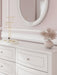 | Details | PCB1819B6: Includes upholstered panel headboard, panel footboard and rails, Made with engineered wood (MDF/particleboard/plywood) and decorative laminate for the right balance of affordability and durability , Matte white finish, Decorative laminate replicates natural or man-made material surfaces with consistent color, pattern and texture , Polyester upholstery, Acrylic ball tops, Pink, purple and white LED lighting options; touch button control, Power cord included; UL Listed, Foundation/box spring required, sold separately , Mattress available, sold separately, Minor assembly required, PCB1819B2: Includes dresser and mirror, Made with engineered wood (MDF/particleboard/plywood) and decorative laminate for the right balance of affordability and durability , Matte white finish, Decorative laminate replicates natural or man-made material surfaces with consistent color, pattern and texture , Crystal drawer knobs, 6 smooth-gliding drawers, Drawer interiors are lined with a faux linen laminate for a clean, finished look, Safety is a top priority, clothing storage units are designed to meet the most current standards for stability, ATM F 2057 (ASTM International), Drawers extend out to accommodate maximum access to drawer interior while maintaining safety, Mirror can be mounted on wall vertically , Minor assembly required, PCB1819-91: Made with engineered wood (MDF/particleboard/plywood) and decorative laminate for the right balance of affordability and durability, Matte white finish, Decorative laminate replicates natural or man-made material surfaces with consistent color, pattern and texture, Crystal drawer knob, 1 smooth-operating drawer, Drawer interior is lined with a faux linen laminate for a clean, finished look, Open shelf, USB-A and USB-C charging ports, Pink, purple and white LED lighting options; touch button control, Power cord included; UL Listed, Minor assembly required, | |