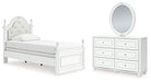 | Details | PCB1819B5: Includes upholstered panel headboard, panel footboard and rails, Made with engineered wood (MDF/particleboard/plywood) and decorative laminate for the right balance of affordability and durability , Matte white finish, Decorative laminate replicates natural or man-made material surfaces with consistent color, pattern and texture , Polyester upholstery, Acrylic ball tops, Pink, purple and white LED lighting options; touch button control, Power cord included; UL Listed, Foundation/box spring required, sold separately , Mattress available, sold separately, Minor assembly required, PCB1819B2: Includes dresser and mirror, Made with engineered wood (MDF/particleboard/plywood) and decorative laminate for the right balance of affordability and durability , Matte white finish, Decorative laminate replicates natural or man-made material surfaces with consistent color, pattern and texture , Crystal drawer knobs, 6 smooth-gliding drawers, Drawer interiors are lined with a faux linen laminate for a clean, finished look, Safety is a top priority, clothing storage units are designed to meet the most current standards for stability, ATM F 2057 (ASTM International), Drawers extend out to accommodate maximum access to drawer interior while maintaining safety, Mirror can be mounted on wall vertically , Minor assembly required, | |