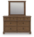Rowlenstown California King Poster Bed with Mirrored Dresser and Nightstand