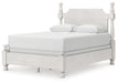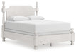 Details PCB823B2: Includes headboard/footboard panels, posts and poster rails , Made with hardwood solids, veneers and MDF substrates , Side rails feature laminated solid hardwood slat support rails (or LVL) with glued and screwed blocking for added strength, Rubbed antiqued white finish , Foundation/box spring required, sold separately, Mattress available, sold separately , Assembly required, PCB823B1: Includes dresser and mirror, Dresser made with hardwood solids, veneers and MDF substrates , Mirror made with solid wood, Rubbed antiqued white finish, Metal hardware with pewter-tone finish, 8 smooth-gliding drawers with fully finished interiors, French/English dovetail construction and heavy-duty ball-bearing side glides, Top drawers felt lined, Mirror attaches to back of dresser, PCB823-93: Made with hardwood solids, veneers and MDF substrates, Rubbed antiqued white finish, Metal hardware with pewter-tone finish, 3 smooth-gliding drawers with fully finished interiors, French/English dovetail construction and heavy-duty ball-bearing side glides, Top drawer felt lined, 110V power supply with USB-A and USB-C charging ports, Power cord included; UL listed,