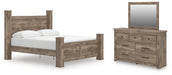Rusticott California King Poster Bed with Mirrored Dresser